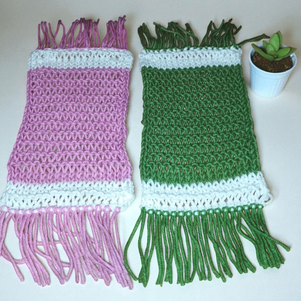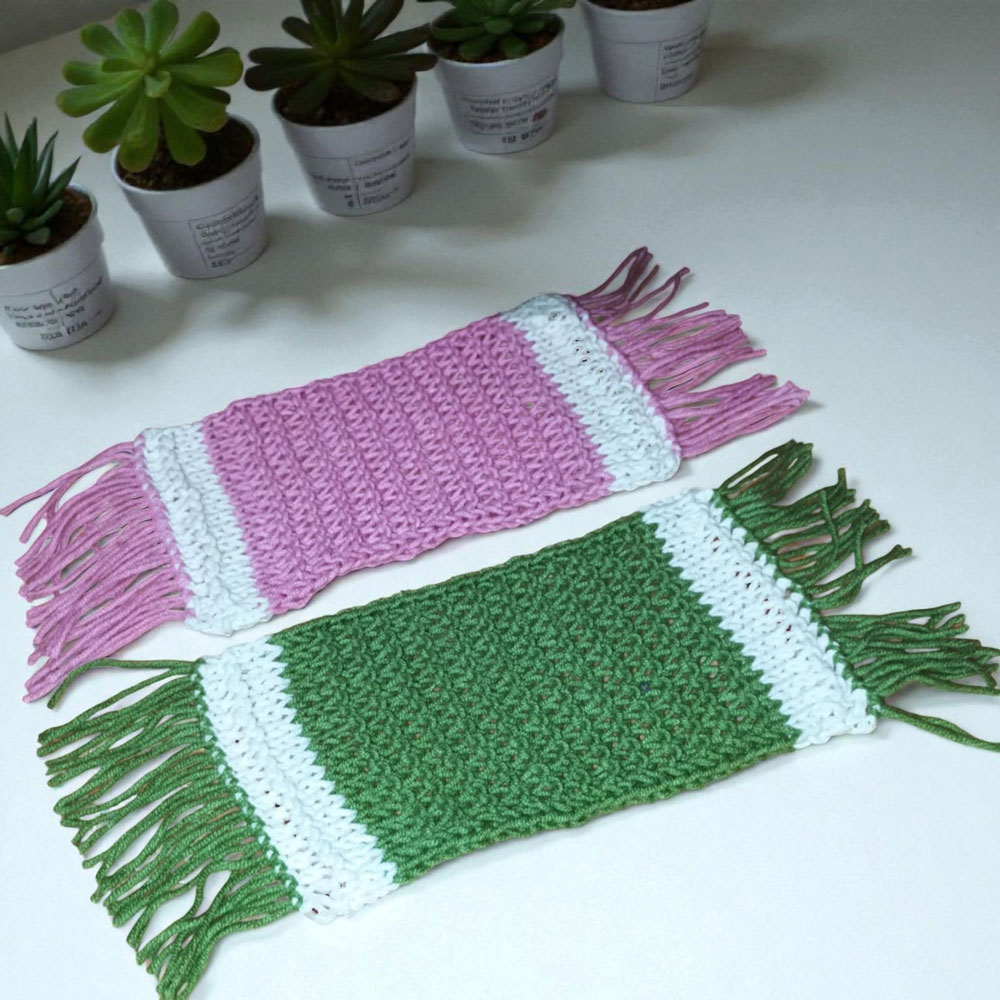 Χειροποίητα Πλεκτά Σουβέρ – Σετ των 2 Πράσινο-Ροζ Caseville.gr
