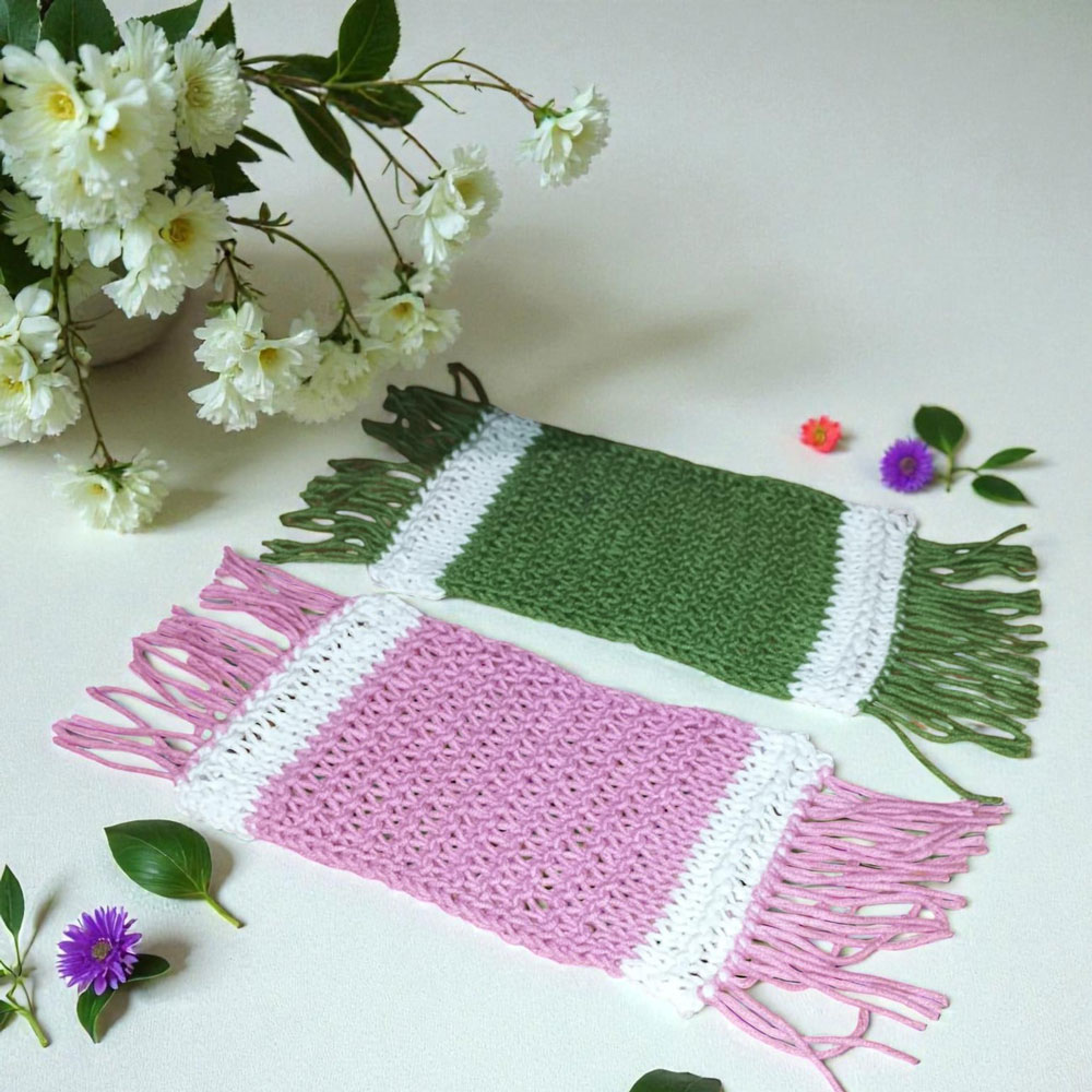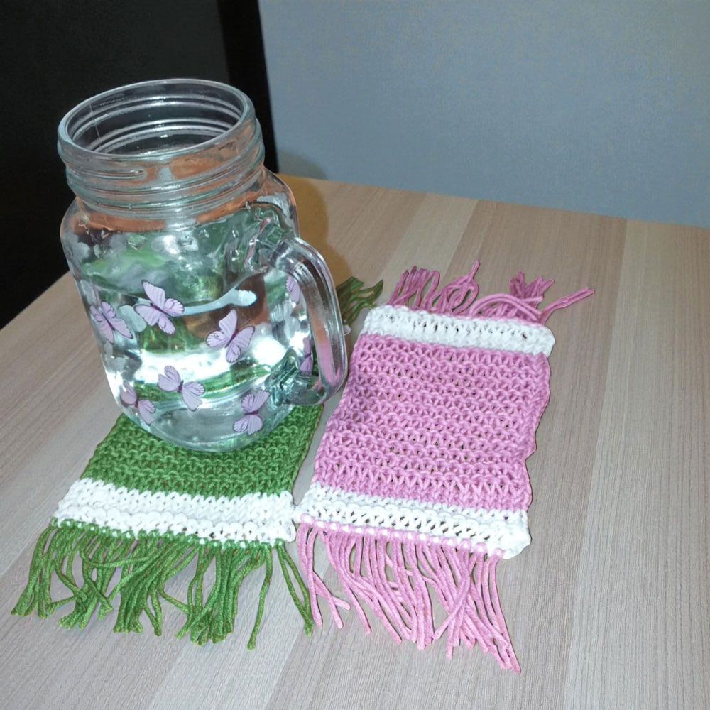 Χειροποίητα Πλεκτά Σουβέρ – Σετ των 2 Πράσινο-Ροζ